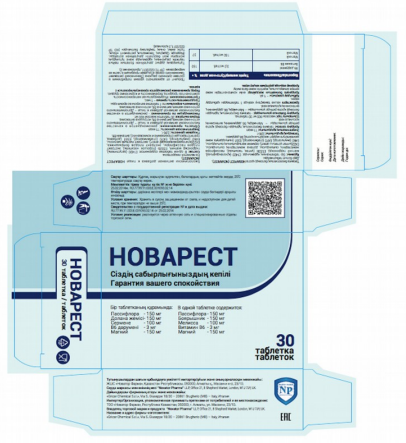 (526) Неохраноспособные элементы: все словесные, цифровые обозначения, предупредительные знаки, кроме «НОВАРЕСТ» /пп.2, 3, 6 п.1 ст.6 Закона РК «О товарных знаках, знаках обслуживания, географических указаниях и наименованиях мест происхождения товаров»/