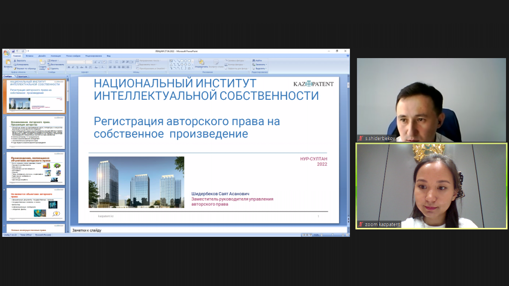 On 27-28 June Qazpatent held a training webinar for entrepreneurs and people with business initiative of Qolday Enterprise Centre on the topic: "Intellectual Property for Business".
