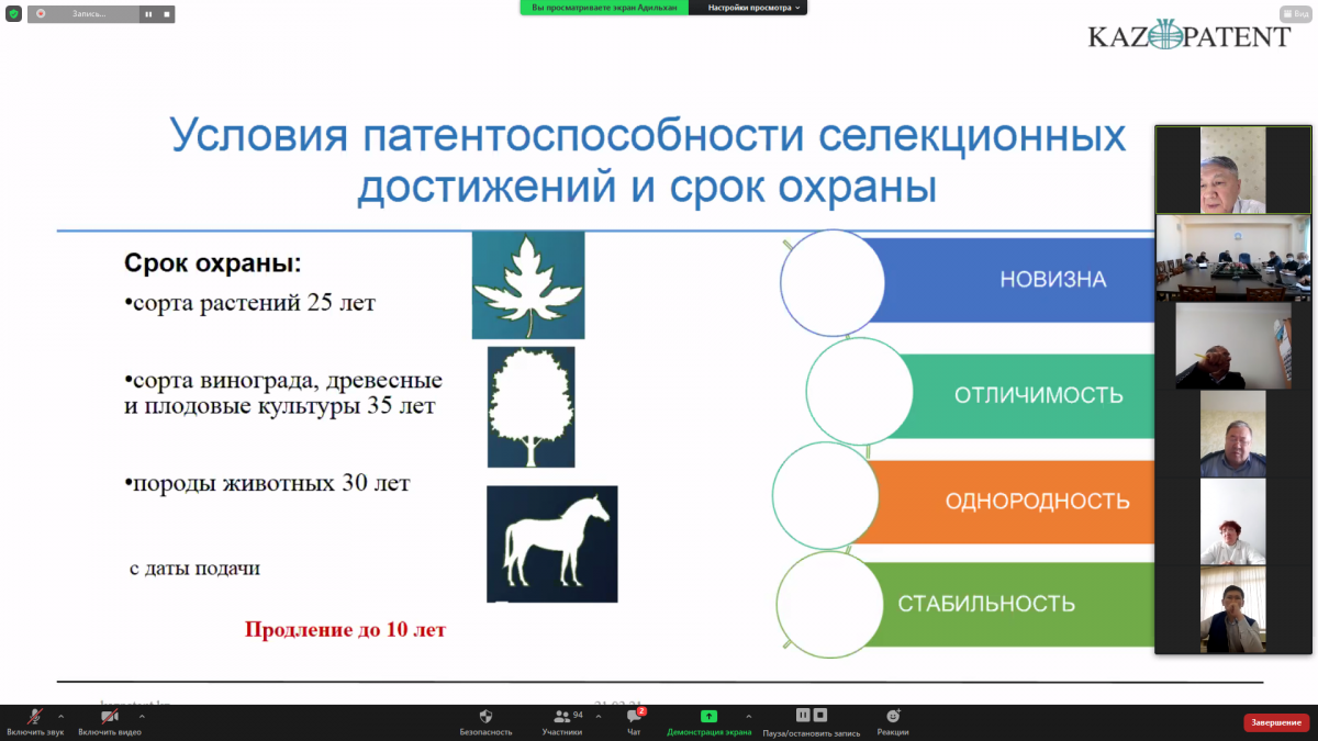 Kazpatent, together with the Ministry of Agriculture (MoA), held a webinar for agricultural specialists on the legal protection of breeding achievements. The event was timed to coincide with the celebration of the International Day of Intellectual Property.