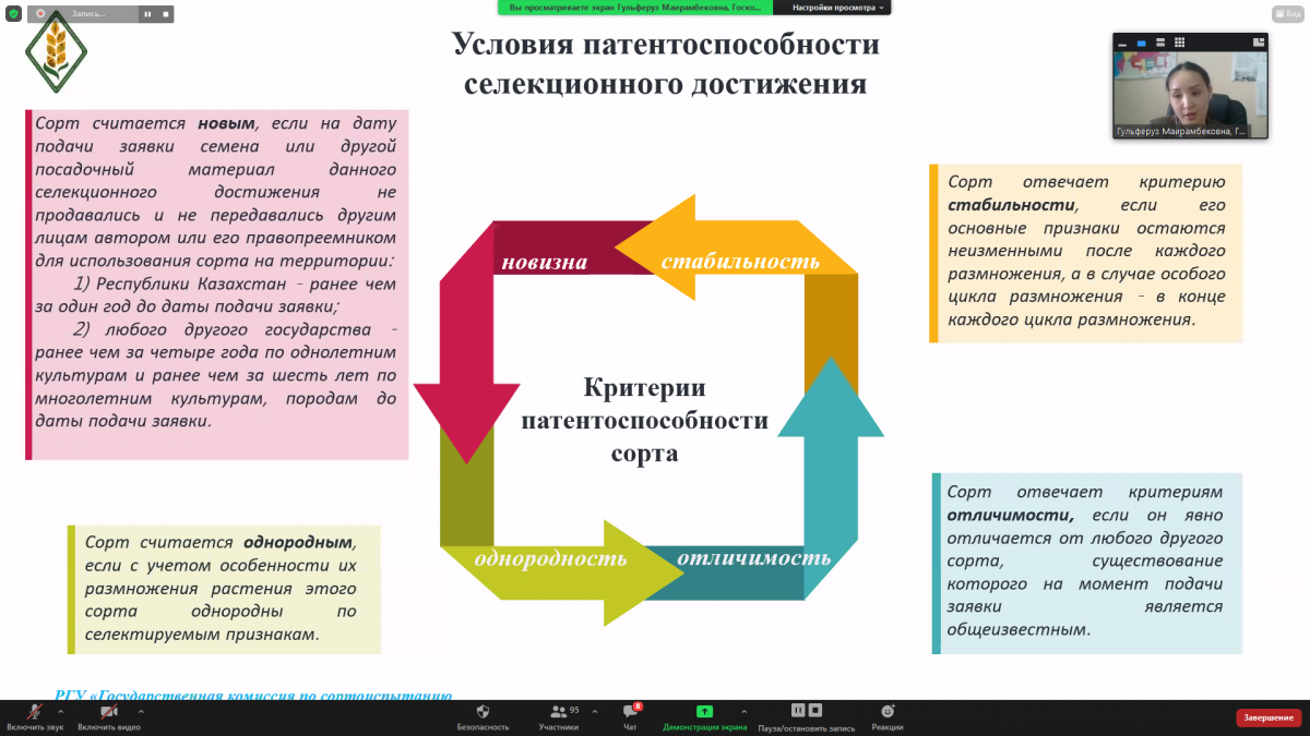 The webinar was moderated by Kaliya Batayeva, Advisor to the director of NIIP. On the part of the Ministry of Agriculture, Talgat Azhgaliyev, Chairman of the State Commission for Variety Testing of Agricultural Crops, made a welcoming speech.