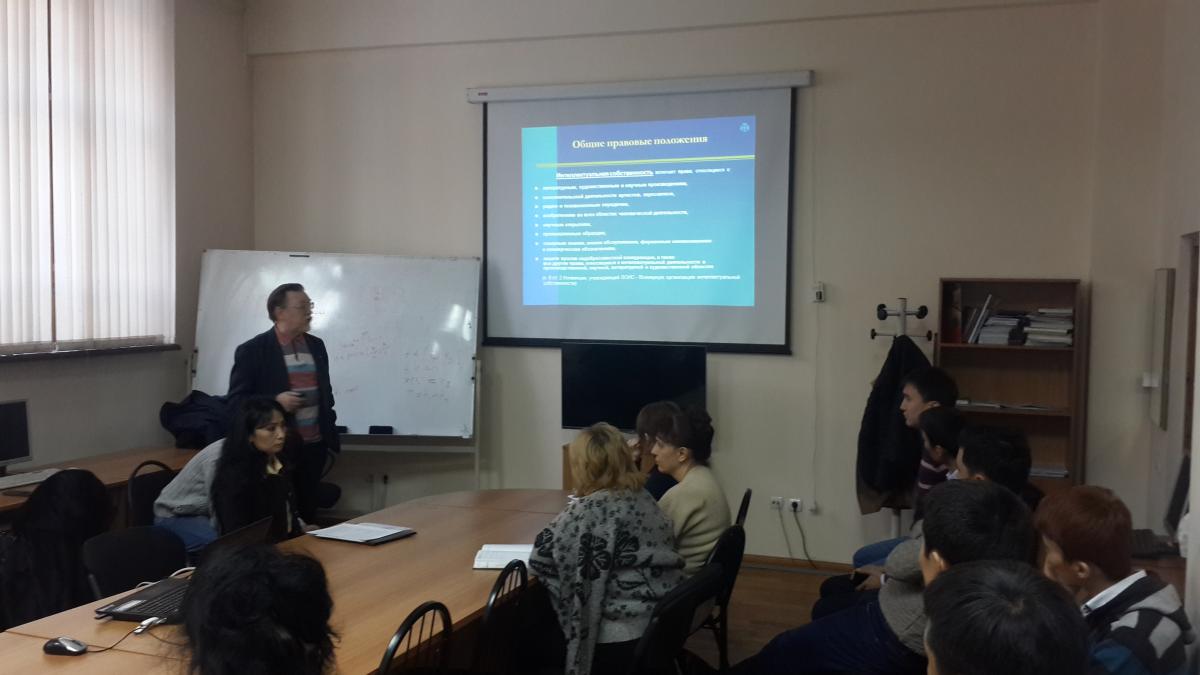 Following lectures were given: "Legislation of Kazakhstan on the issues of intellectual property by chief examiner of the Department of patent researches on inventions V.P. Fedurin, «Promotion of invention and innovation in the Republic of Kazakhstan» by Zh.A. Serikbayeva and «Electronic filing of applications for IP objects» by B.O. Nazarov, chief specialists of the Training center of the RSE «NIIP» branch.