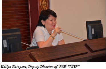Seminar on reporting the results of foreign study trips of employees of RSE "NIIP" was held on July 29, 2016. The workshop was opened by the Deputy Director of RSE "NIIP" Ms. Kaliya Batayeva. The following examiners made reports on gained experience for employees of RSE "NIIP": Ms. Galiya Turganova, Chief examiner of the Direction on examination of international applications for trademarks (about Korean Intellectual Property Office), Ms. Altynay Batyrbekova, Chief examiner of the Direction on inventions and utility models examination (about Japan Patent Office), Ms. Aida Damirzhan, Leading examiner of the Direction on inventions and utility models examination (about State Intellectual Property Office of China), Raushan Omiraliyeva, Chief examiner of the Direction on examination of trademarks and appellations of origin (about WIPO Summer School in Geneva, Switzerland), Kyzzhibek Aitymbetova, Leading examiner of the Direction on examination of trademarks and appellations of origin (about WIPO Summer School in Kazan, Russian Federation).