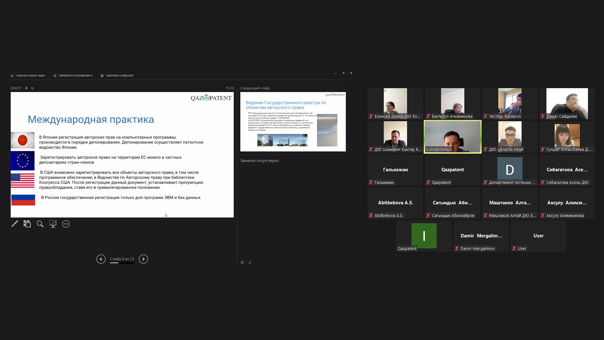 Qazpatent held a training webinar for Justice Department staff on 20 April.