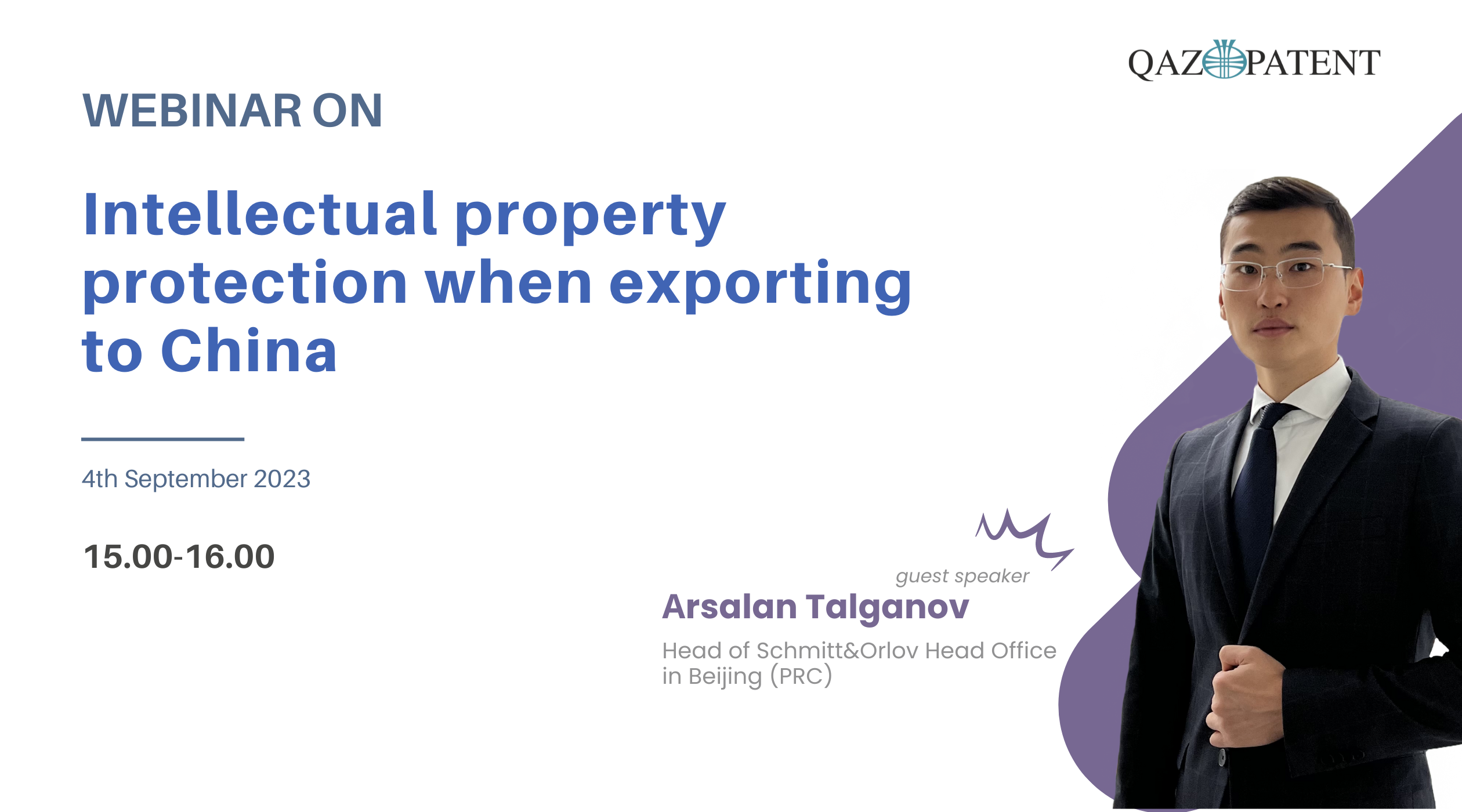On September 4, 2023 will be held a webinar on "Protection of intellectual property when exporting to China", organized jointly with QazTrade.