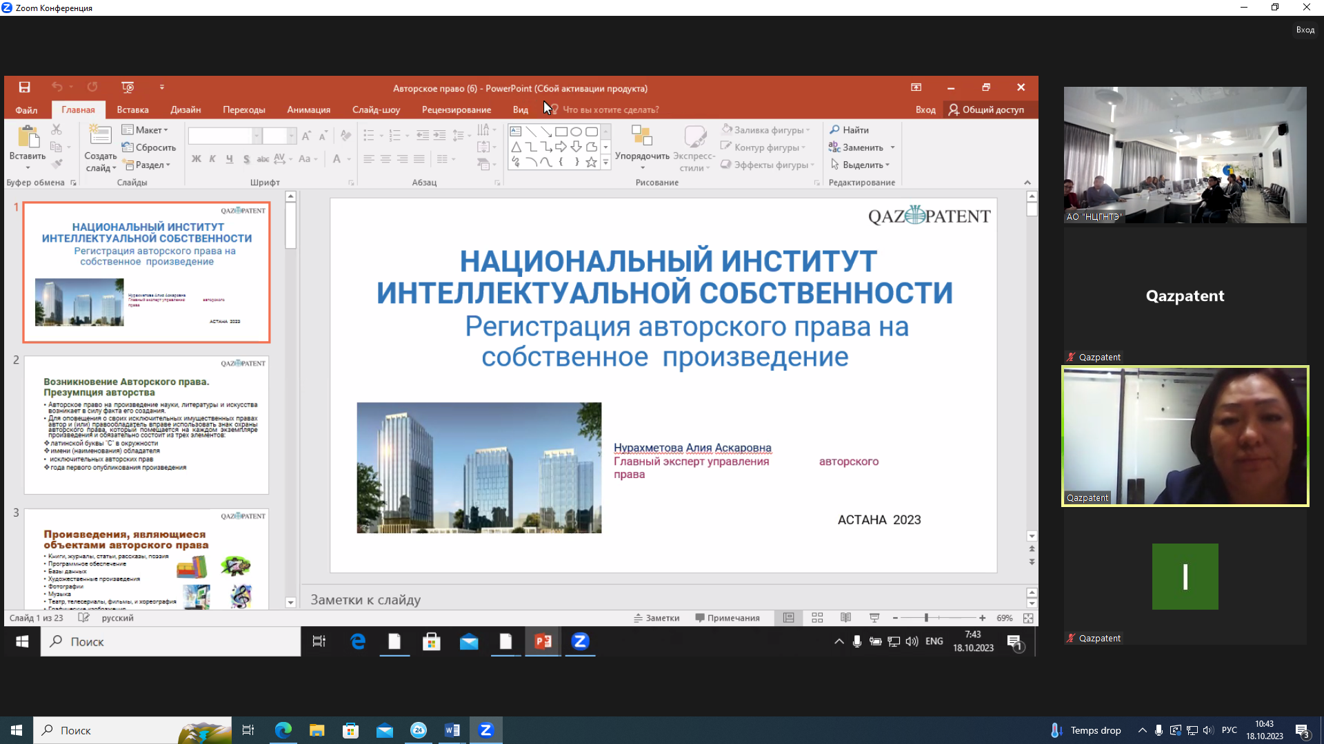 On October 18, 2023, a webinar was held for the employees of National Center of Science and Technology Evaluation on “Protection of intellectual property”.