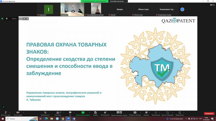 On February 7, 2024, Qazpatent held a seminar for the judges of specialized inter-district administrative courts, district and equivalent courts on the topic "Some issues of trademark protection".