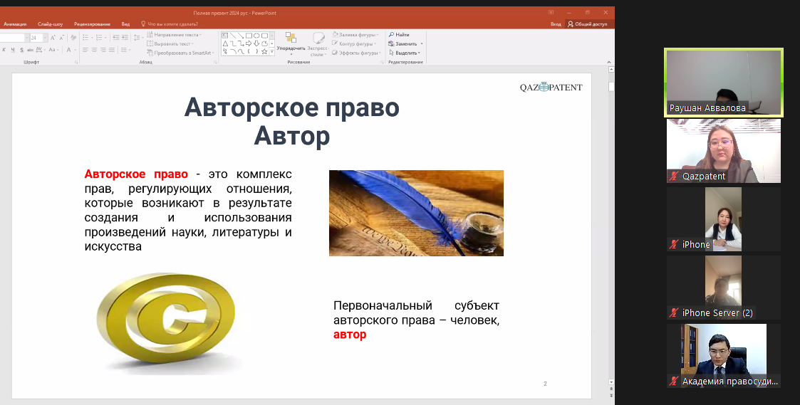 On February 27, 2024, Qazpatent held a webinar for judges of district and equivalent courts considering civil cases on the topic "Legal protection of intellectual property objects".