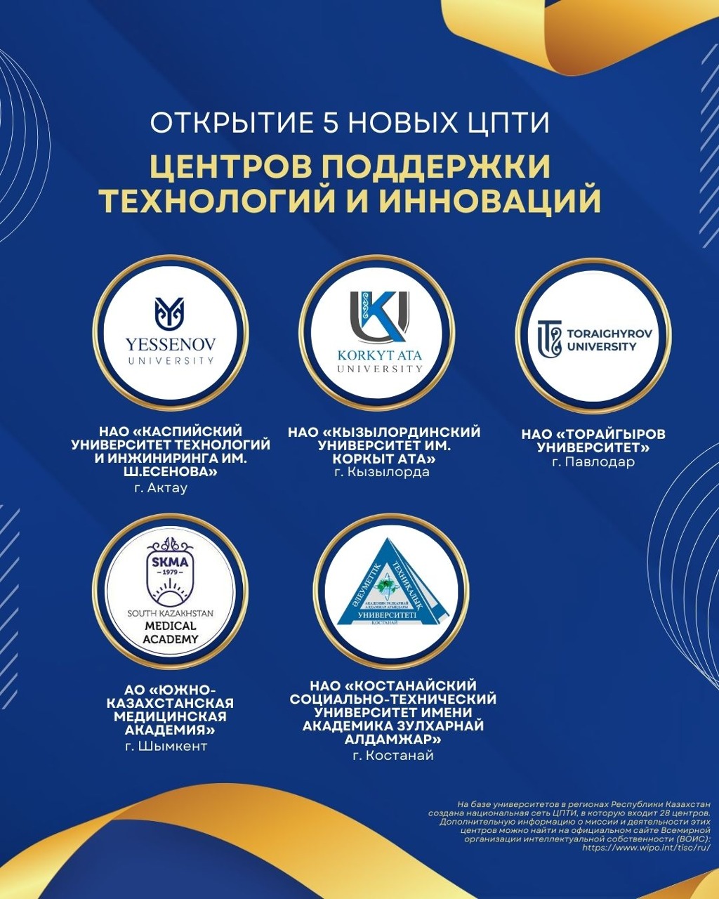 For reference: Currently there are 28 Technology and Innovation Support Centers in 17 regions of Kazakhstan. Information about the Technology and Innovation Support Centers (TISCs), including the mode of operation, services provided and contact details, is available on the official website of the World Intellectual Property Organization (WIPO). Visit https://www.wipo.int/tisc/ru/search/index.jsp for more information.
