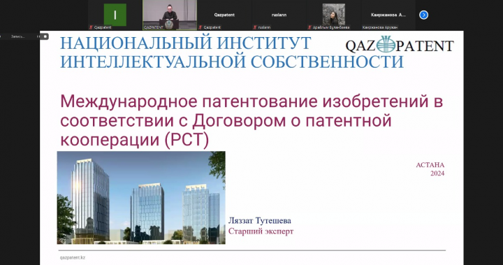 On March 29, Qazpatent held a webinar for master’s students, PhD students and teaching stuff of L.N. Gumilyov Eurasian National University on the topic "Legal protection of inventions and utility models".