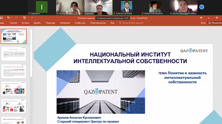On April 9, Qazpatent held a webinar for the teaching staff of K. Zhubanov Aktobe Regional State University.