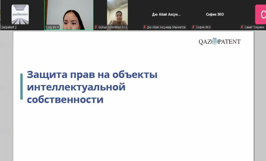 On November 6, Qazpatent held a webinar for employees of the Departments of Justice departments of the Republic of Kazakhstan, Economical investigate departments of the Republic of Kazakhstan and the Departments of Internal Affairs of the Republic of Kazakhstan on the topic "Tools for the Protection of Intellectual Property Rights".