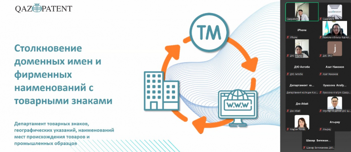 On July 1, Qazpatent conducted a webinar for employees of the Departments of Justice and Departments of Economic Investigations on the topic: "The Collision of Domain Names and Corporate Names with Trademarks."