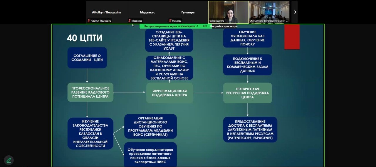 February 17, 2026, the «National Institute of Intellectual Property» (Qazpatent) held an online seminar “Filing a patent application, legal protection, and patent search” for the faculty and staff of «Zhetysu University named after I. Zhansugurov» (hereinafter – the university).
