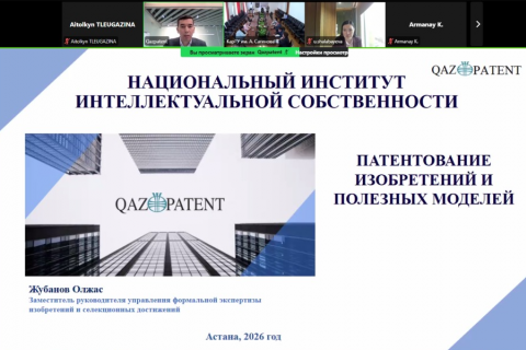 As part of promoting the activities of the Technology and Innovation Support Centers (TISCs), Kazpatent held an online seminar for the Astana International Financial Centre and Karaganda Technical University named after Abylkas Saginov