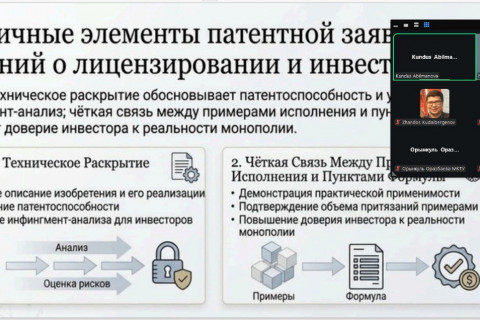 Алматыда Qazpatent филиалының Оқу орталығы ұйымдастырған «Қазақстан Республикасындағы өнертабыстар мен пайдалы модельдерді құқықтық қорғау» тақырыбында оқыту семинары өтті