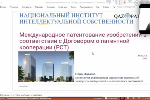 Qazpatent held webinar for members of the National Chamber of Entrepreneurs of the Republic of Kazakhstan «Atameken»