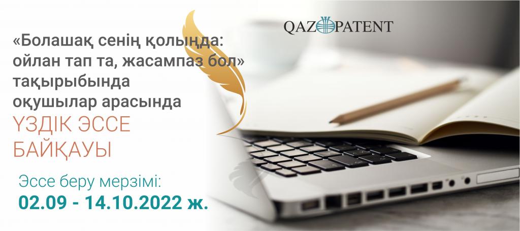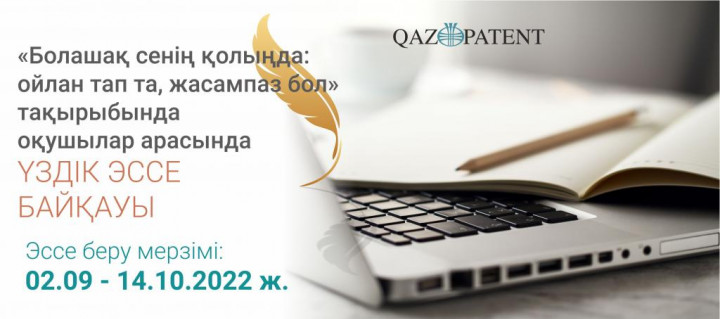 QAZPATENT оқушылар арасында«Болашақ сенің қолыңда: ойлан тап та, жасампаз бол» тақырыбында үздік эссеге жыл сайынғы конкурс өткізілетіні туралы хабарлайды.