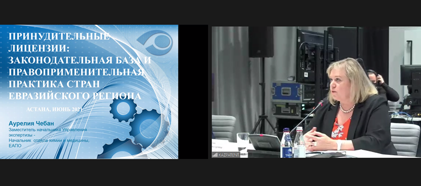 Сараптама басқармасы басшысының орынбасары – ЕАПВ химия және медицина бөлімінің басшысыА.В. Чебан еуразиялық кеңістікте дәрілік препараттарға қатысты патенттерге мәжбүрлі лицензия беру тетігін қолдану тәжірибесімен таныстырды.