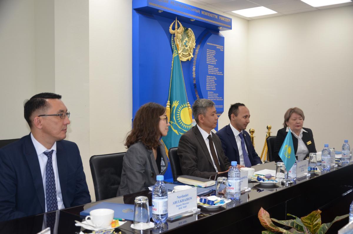 «ҰЗМИ» РМК директорының кеңесшісі Алия Хабиденова институт қызметінің негізгі бағыттары туралы презентациямен сөз сөйледі, Америка әріптестерін Қазақстан Республикасының зияткерлік меншік саласындағы заңнамасындағы өзекті өзгерістермен таныстырды, зияткерлік меншік объектілерін ұлттық және халықаралық тіркеу бойынша статистикалық көрсеткіштерді көрсетті.