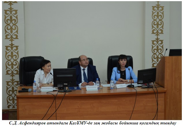 2016 жылғы 30 қыркүйекте сағ 12.00 Алматы қаласында С.Ф. Асфендияров атындағы Қазақ ұлттық медицина университетінде «Қазақстан Республикасының кейбір заңнамалық актілеріне зияткерлік меншік саласындағы заңнаманы жетілдіру мәселесі бойынша өзгерістер мен толықтырулар енгізу туралы» Қазақстан Республикасы Заңының жобасы бойынша қоғамдық тыңдау өтті. Іс-шараға Қазақстан Республикасы Әділет министрлігінің, ҚР ӘМ «Ұлттық зияткерлік меншік институты» РМК өкілдері және жоғары оқу орнының профессорлық-оқытушы құрамы қатысты.