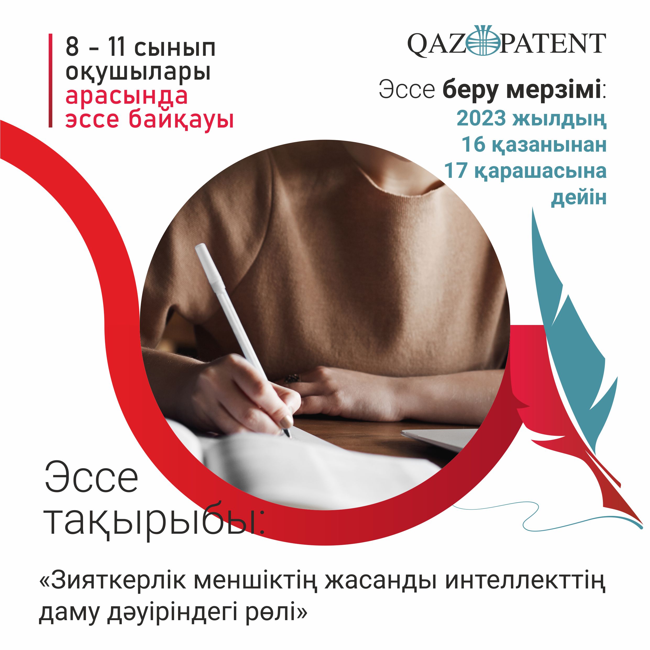 QAZPATENT 8-11 сынып оқушыларына арналған жыл сайынғы эссе байқауына өтінімдерді қабылдау туралы хабарлайды.