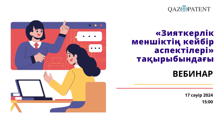 17 сәуірде сағат 15:00-де Qazpatent С.Сейфуллин атындағы Қазақ агротехникалық зерттеу университетінің студенттеріне, қызметкерлеріне және профессор-оқытушылар құрамы үшін «Зияткерлік меншіктің кейбір аспектілері » тақырыбында вебинар өткізеді.