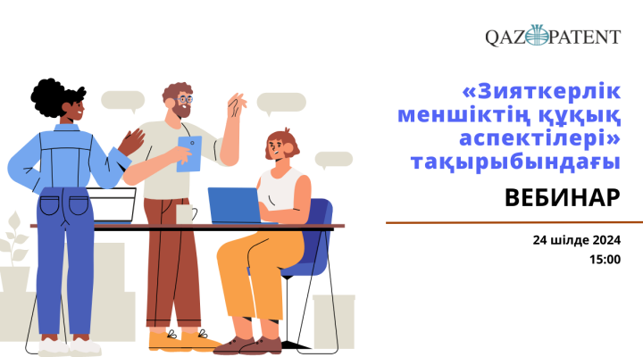 24 шілдеде сағат 15:00-де Qazpatent «Бизнес-жаттықтырушылар қауымдастығы» ҚБ-нің қызметкерлеріне «Зияткерлік меншіктің құқық аспектілері» тақырыбында вебинар өткізеді.