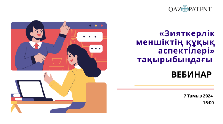 7 тамызда сағат 15:00-де Qazpatent «Агротехнологияларды трансферттеу және коммерцияландыру орталығы» ЖШС-ның қызметкерлеріне «Зияткерлік меншіктің құқық аспектілері» тақырыбында вебинар өткізеді.