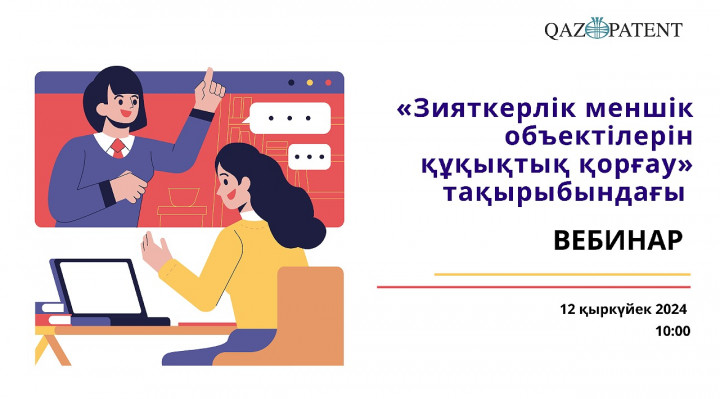 12 қыркүйек күні Qazpatent Заң консультанттарының республикалық алқасы үшін «Зияткерлік меншік объектілерін құқықтық қорғау» тақырыбында вебинар өткізеді.