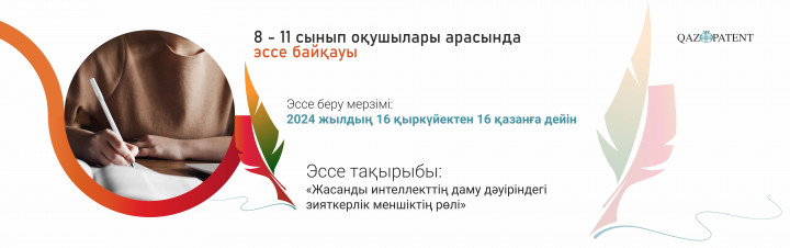 QAZPATENT 8-11 сынып оқушыларына арналған жыл сайынғы эссе байқауына өтінімдерді қабылдау туралы хабарлайды.