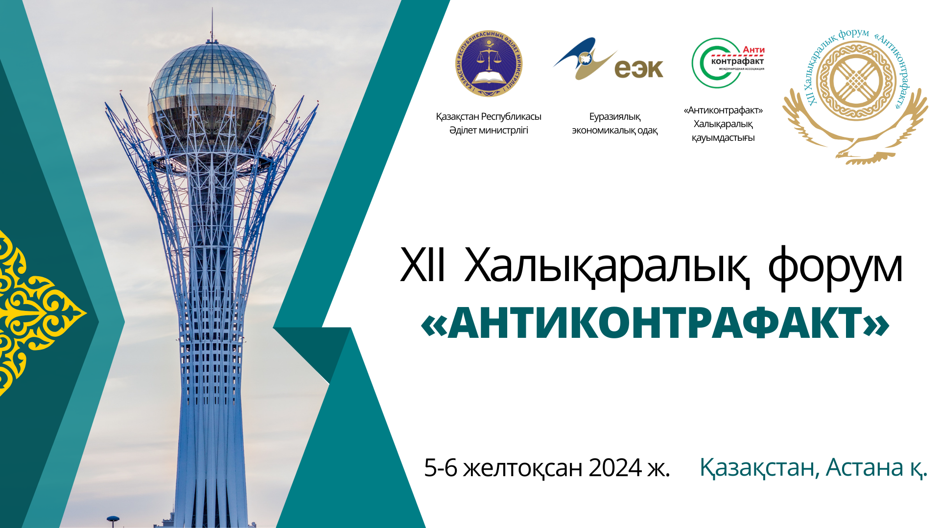 Зияткерлік меншік құқықтарын қорғау және сақтау мәселелеріне арналған XII Халықаралық «Антиконтрафакт» форумы 2024 жылғы 5-6 желтоқсанда Қазақстан Республикасы, Астана қаласында өтеді. Форумның ұйымдастырушылары Қазақстан Республикасының Әділет министрлігі, Еуразиялық экономикалық комиссия және «Антиконтрафакт» халықаралық қауымдастығы болып табылады.
