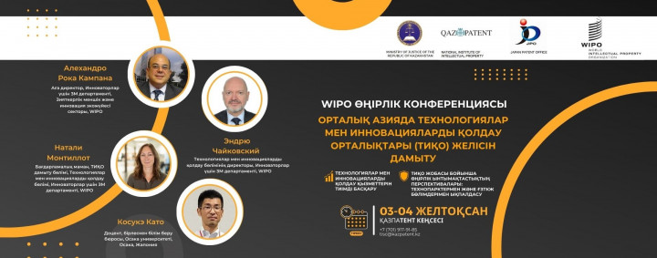 РМК «Ұлттық зияткерлік меншік институты» ҚР ӘМ ЗМҚ-нің (Qazpatent), Жапония патенттік ведомствосы (JPO), Еуразиялық патенттік ведомствосы (ЕАПВ) және Қытайдың Ұлттық зияткерлік меншік басқармасы (CNIPA) өкілдерінің қатысуымен, Дүниежүзілік зияткерлік меншік ұйымының (WIPO) ұйымдастырумен қолдайтын халықаралық іс-шаралар сериясына қатысуға шақырады. Бұл іс-шаралар Қазақстан мен Орталық Азияда инновациялық экожүйені дамытуға және зияткерлік меншікті танымал етуге бағытталған іс-шараға шақырады.