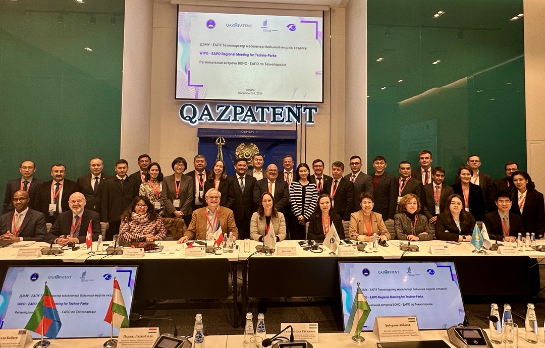 2024 жылғы 5-6 желтоқсанда Астанада Дүниежүзілік зияткерлік меншік ұйымы (ДЗМҰ) мен Еуразиялық патенттік ұйымның (ЕАПҰ) Өңірлік кездесуі өтті, ол халықаралық сарапшыларды, академиялық мекемелер мен технопарктер өкілдерін зияткерлік меншік (ЗМ) маркетингі және технопарктер, академиялық мекемелер арасындағы стратегиялық әріптестік мәселелерін талқылау үшін біріктірді. Іс-шара қатысушыларға ЗМ коммерцияландыру саласындағы түйінді сын-қатерлер мен мүмкіндіктерді талқылауға мүмкіндік бере отырып, Еуразиялық өңір елдерінің және одан тыс жерлердің өзара іс-қимылы үшін бірегей платформаға айналды. Кездесуді ДЗМҰ, ЕАПВ, Қазақстан Республикасының Әділет министрлігі және Qazpatent ұйымдастырды.