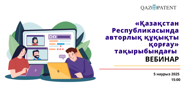 5 наурызда Qazpatent Қазақ Спорт және Туризм Академиясының профессор-оқытушылар құрамына арналған «Қазақстан Республикасында авторлық құқықты қорғау» тақырыбында вебинар өткізеді.