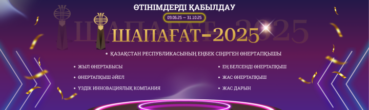 «Шапағат» байқауына қатысу және «Қазақстан Республикасының еңбек сіңірген өнертапқышы» атағын беру үшін өтінімдер мен ұсынымдар 2025 жылғы 9 маусым мен 31 қазан аралығында shapagat@kazpatent.kz электронды поштасына қабылданады.