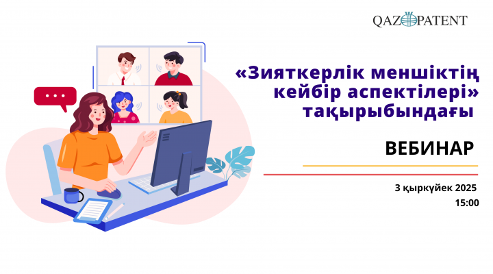 3 қыркүйекте сағат 15:00-те Qazpatent «Ғылым қоры» АҚ-ның қызметкерлеріне және грант алушыларына үшін «Зияткерлік меншіктің кейбір аспектілері» тақырыбында вебинар өткізеді.
