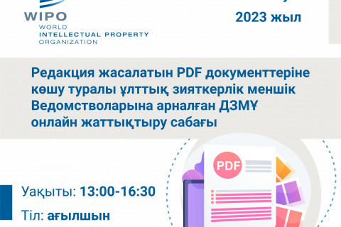 Редакция жасалатын PDF документтеріне көшу туралы ұлттық зияткерлік меншік Ведомстволарына арналған ДЗМҰ онлайн жаттықтыру сабағы өтеді