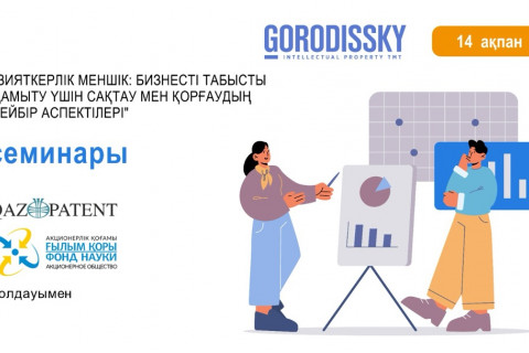 "Зияткерлік меншік: бизнесті табысты дамыту үшін зияткерлік меншікті сақтау мен қорғаудың кейбір аспектілері" семинарына қатысуға шақырамыз.