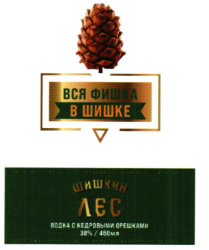 (526) Неохраноспособные элементы: Знак охраняется в целом, без предоставления самостоятельной правовой охраны словесным элементам «ВОДКА С КЕДРОВЫМИ ОРЕШКАМИ», элементам «38%», «450мл» на основании пп.пп.3, 6 п.1 ст.6 Закона Республики Казахстан «О товарных знаках, знаках обслуживания и наименованиях мест происхождения товаров»/.