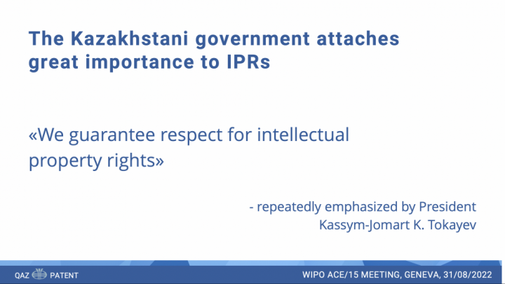 О государственных инициативах, усилении сотрудничества и расширении масштабов разъяснительных и информационных мероприятий в Казахстане презентовала информацию руководитель Центра по правам интеллектуальной собственности (IPR Center) Алтын Сапарғали.