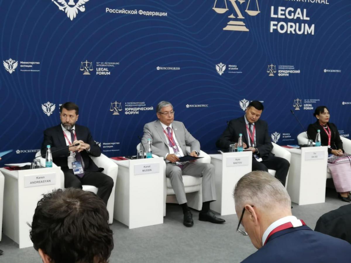 В эти дни (29 июня - 1 июля) в Санкт-Петербурге делегация Министерства юстиции во главе с министром Канатом Мусиным принимает участие в X Петербургском международном юридическом форуме.