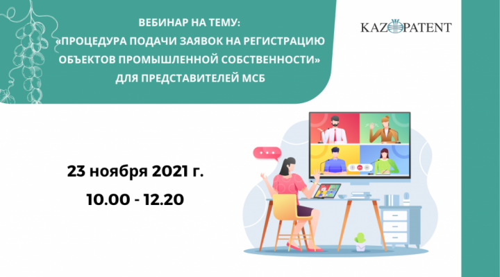Нур-Султан - 23 ноября 2021 г. эксперты Казпатент провели вебинар для субъектов малого и среднего предпринимательства на тему: «Процедура подачи заявок на регистрацию объектов промышленной собственности».
