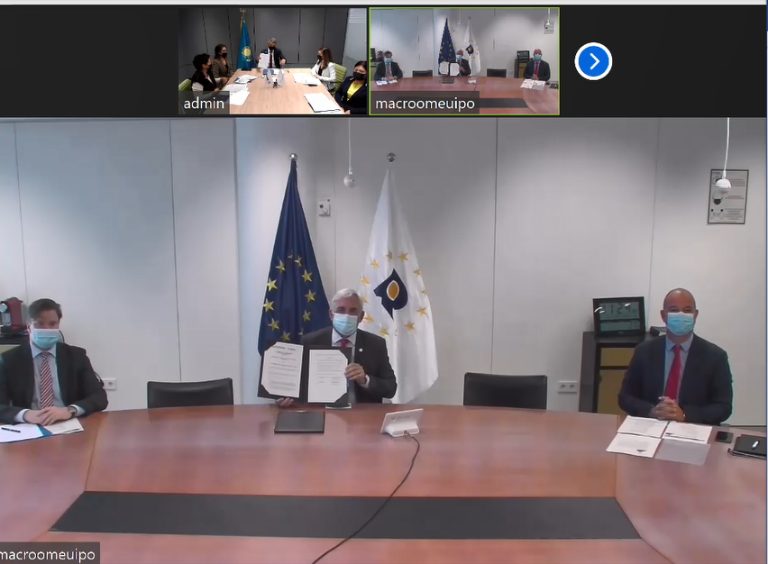Сегодня 6 апреля 2021 года в формате видеоконференцсвязи состоялось подписание Меморандума о взаимопонимании по двустороннему сотрудничеству между Национальным институтом интеллектуальной собственности (КАЗПАТЕНТ) и Ведомством по интеллектуальной собственности Европейского союза (EUIPO).