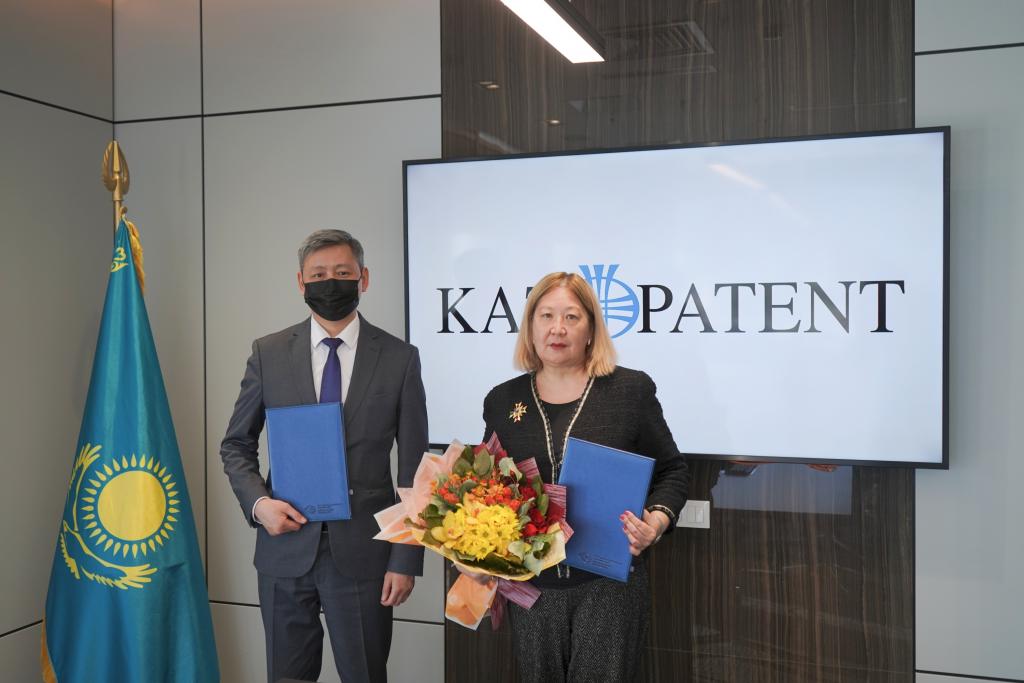 Документ подписан президентом Евразийского патентного ведомства Евразийской патентной организации Сауле Тлевлесовой и директором Казпатента Ерболом Оспановым.