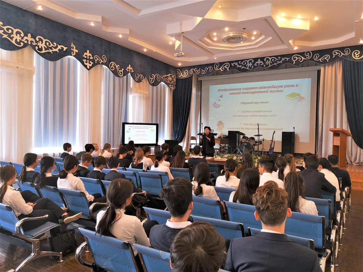 Начальник Управления развития и международного сотрудничества Айдын Артыкова рассказала школьникам том, что такое изобретение, что относится к результатам интеллектуальной деятельности, кто может стать автором таких результатов и что для этого нужно, какие права и обязанности есть у пользователей объектов интеллектуальной собственности и как они могут использовать эти объекты, не нарушая законные интересы их правообладателей.