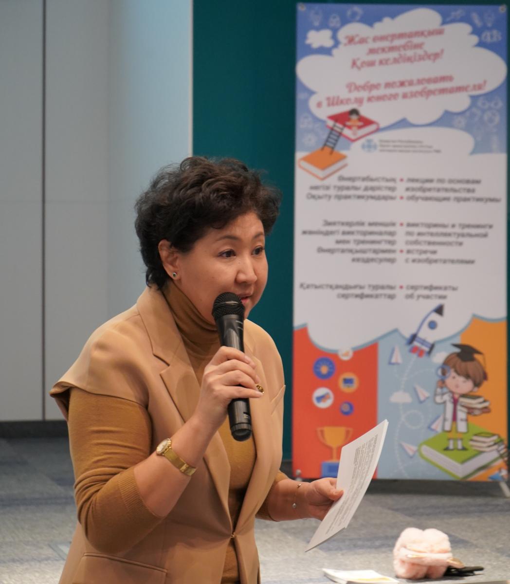Перед учащимися 9-11 классов выступила начальник Управления развития и международного сотрудничества (УРиМС) Айдын Артыкова, погрузив их в мир изобретений, рассказав о необходимости и преимуществах изобретательства.