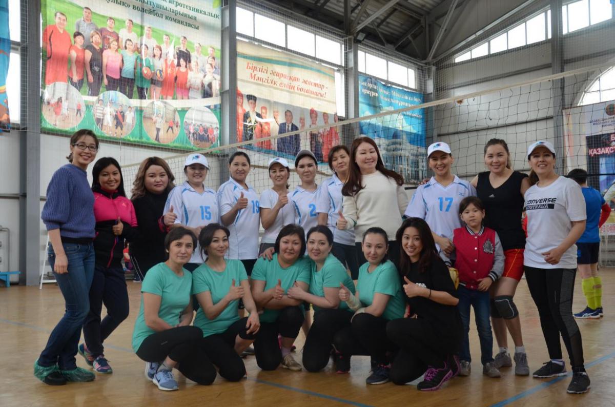 | Женские сборные команды РГП «НИИС» и Казахского агротехнического университета имени Сакена Сейфуллинапо волейболу |