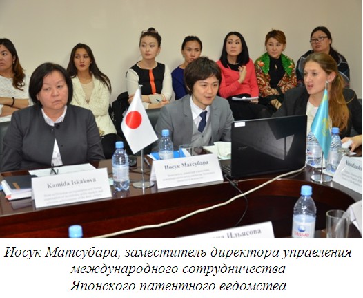 12 ноября 2015 годав г. Астана в РГП «Национальный институт интеллектуальной собственности» МЮ РК был проведен тренинг для экспертов институтана тему: «Законодательство, практика и методика патентной экспертизы по изобретениям» с участием эксперта Патентного ведомства Японии г-на Иосук Матсубара - заместителя директора управления международного сотрудничества Японского патентного ведомства.