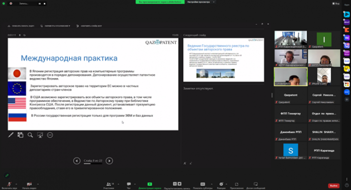 В рамках вебинара были раскрыты вопросы правовой охраны авторского права в Казахстане, а также регистрации товарных знаков за рубежом.