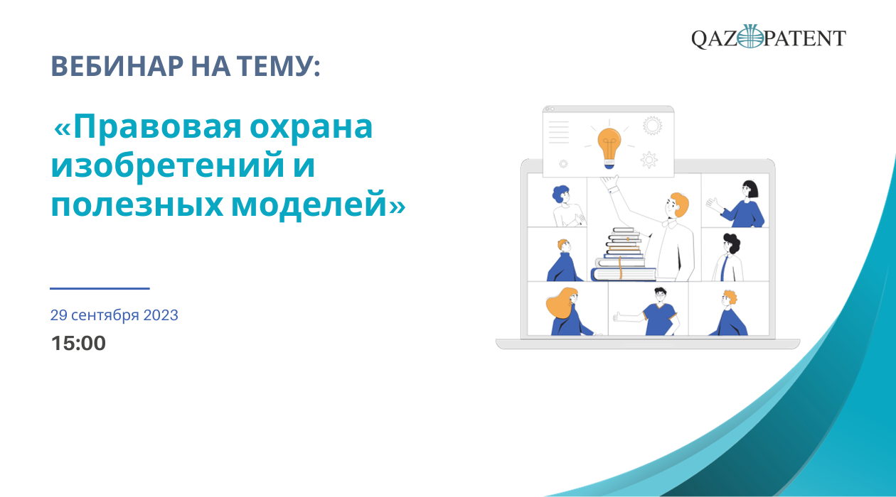 29 сентября 2023 года состоится вебинар для сотрудников Агентства РК по финансовому мониторингу, Министерства внутренних дел и Департамента юстиции на тему «Правовая охрана изобретений и полезных моделей».